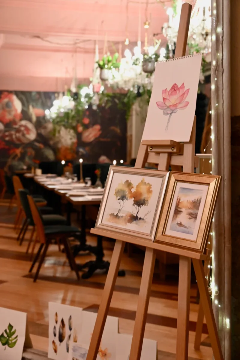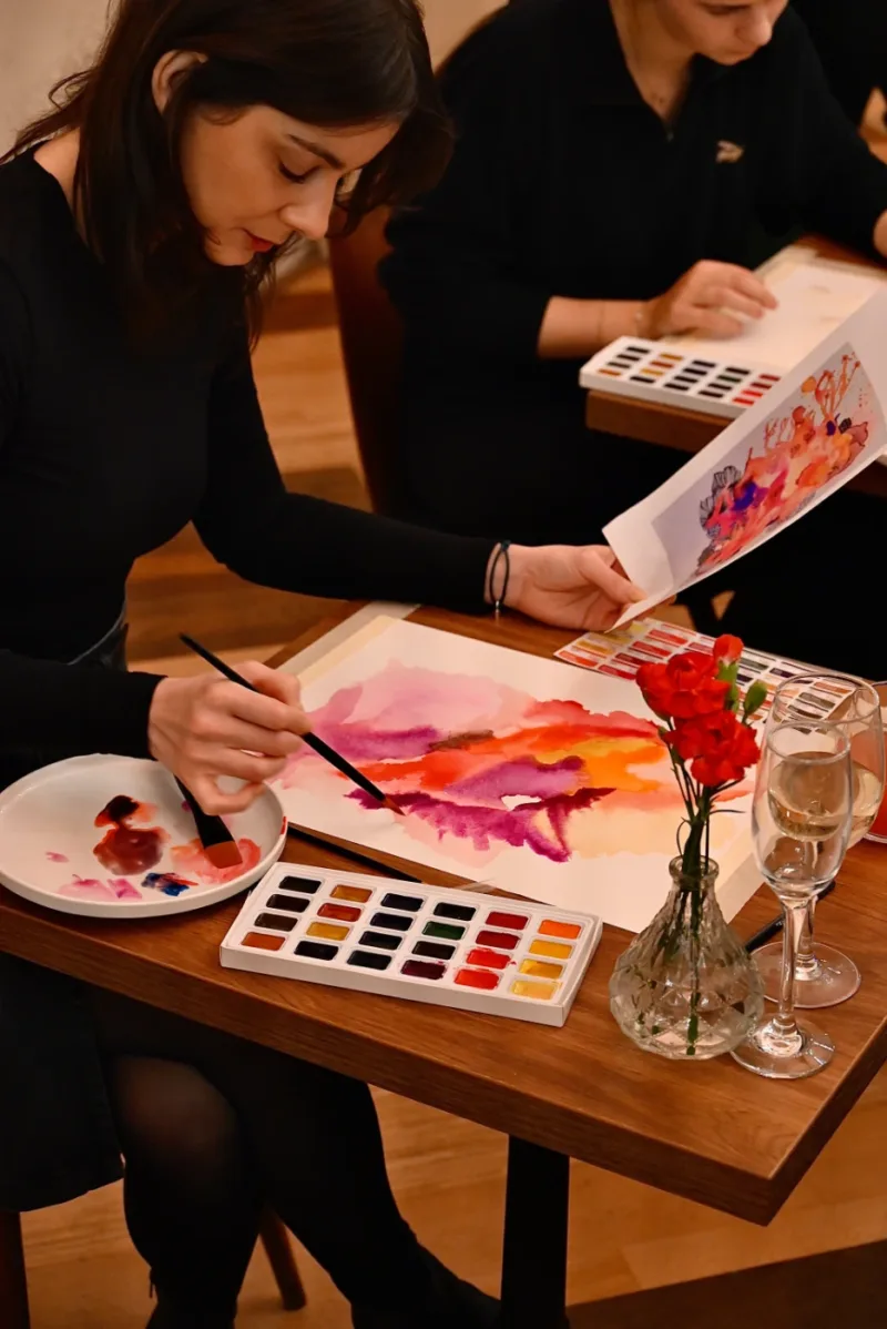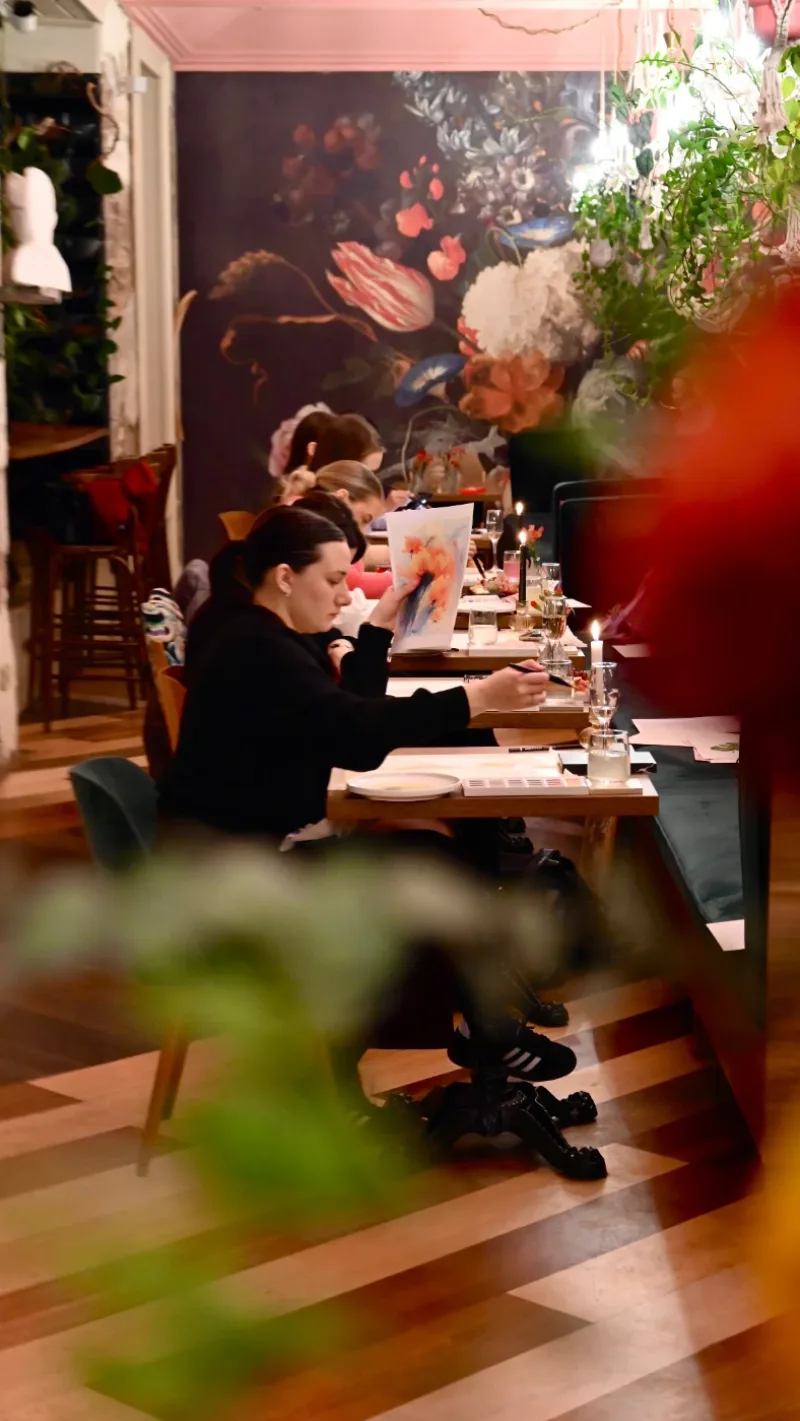 Imagine the warm glow of candlelight, the scent of fresh flowers, a glass of fine wine in hand, and soft music playing in the background… 🍷 Every other Friday, our café transforms into a cozy little studio where you can unwind, escape the daily rush, and immerse yourself in a world of colors, creativity, and design. ✨