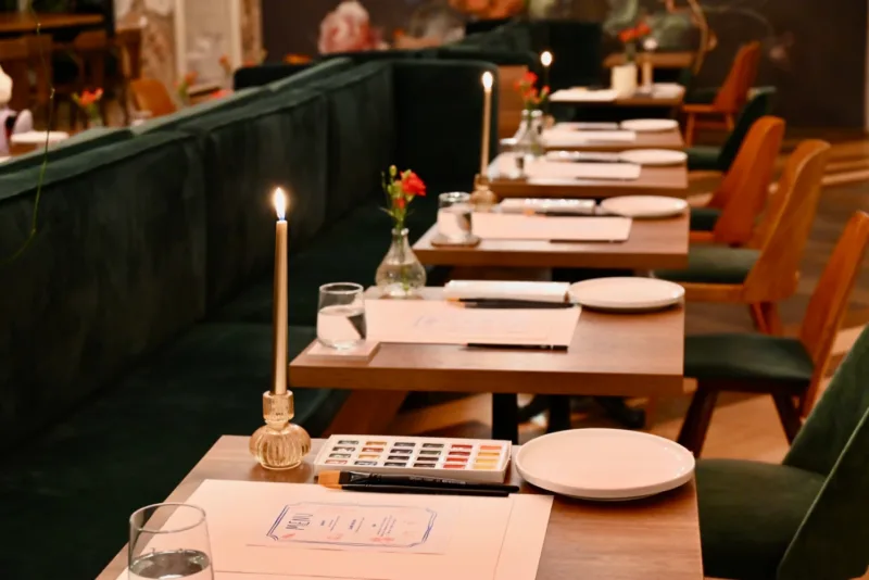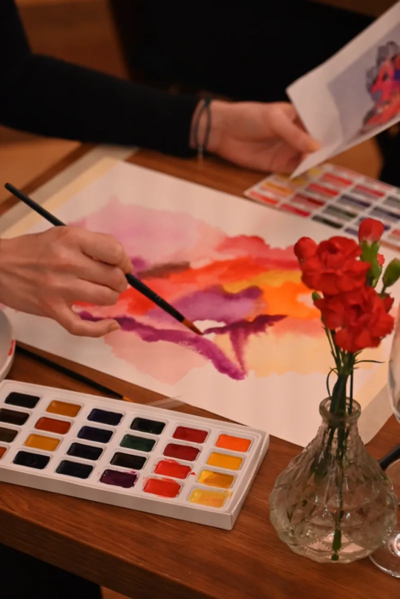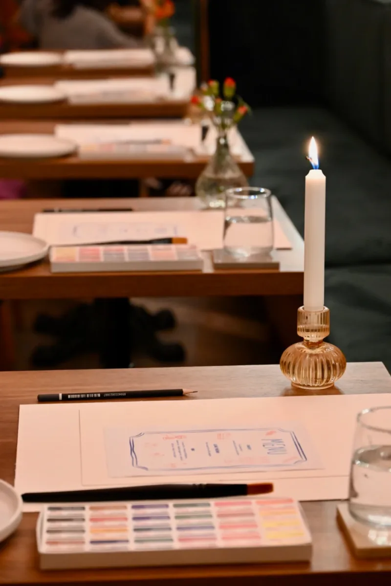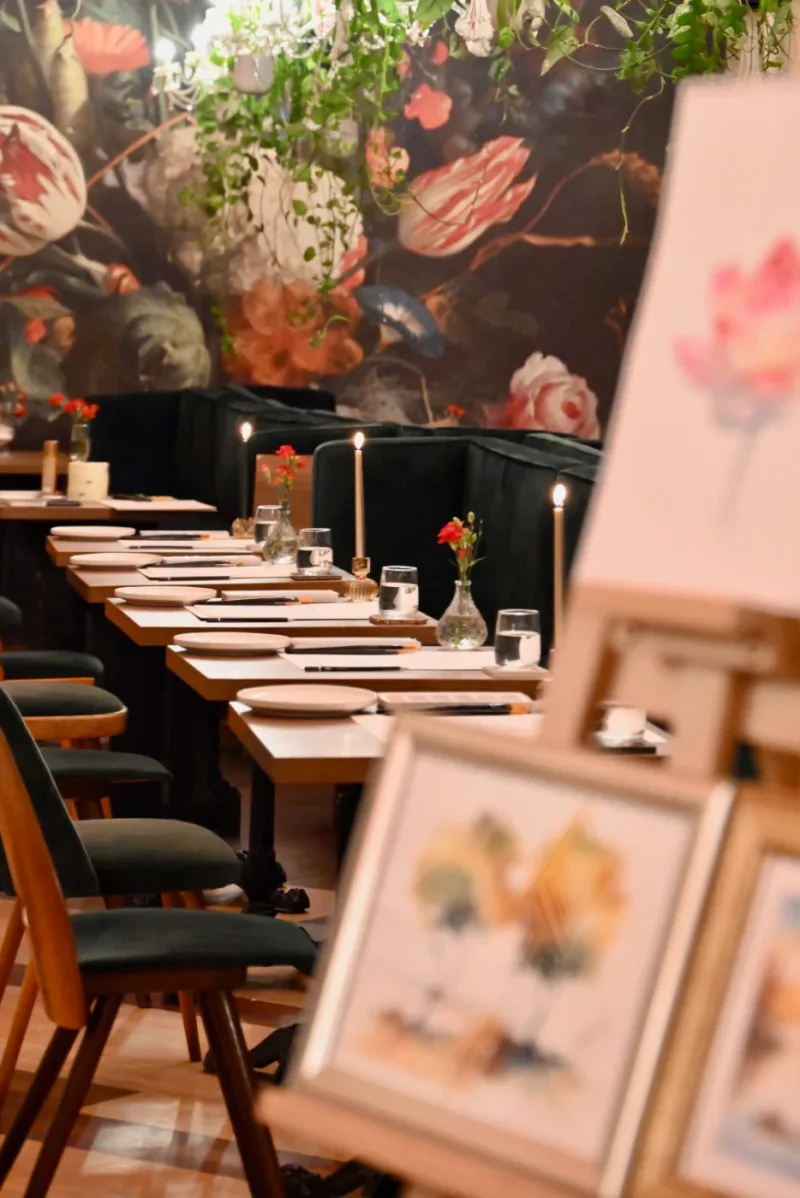 Imagine the warm glow of candlelight, the scent of fresh flowers, a glass of fine wine in hand, and soft music playing in the background… 🍷 Every other Friday, our café transforms into a cozy little studio where you can unwind, escape the daily rush, and immerse yourself in a world of colors, creativity, and design. ✨